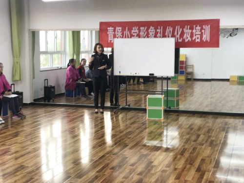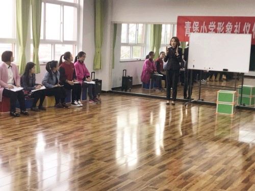 4月8日东方技工学校的高惠清、李小明两位老师来到青堡小学。本着对全校教师个人形象的提升和美姿美仪的普及,展开了针对性的培训。